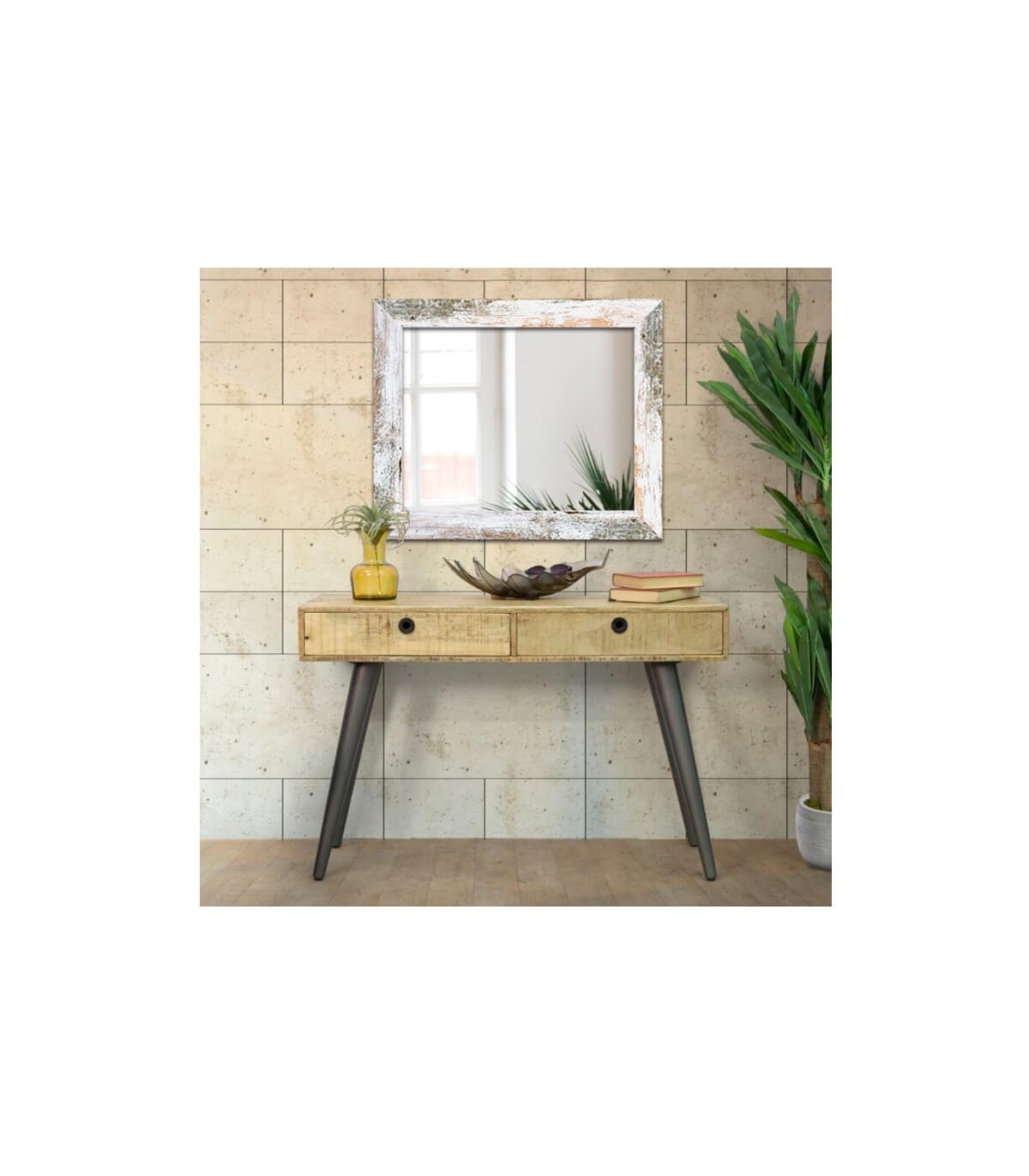 Espejo marco madera decapada para decorar y personalizar tu hogar, tu negocio o tu comercio. Se envía totalmente montado y preparado para colgar. Incluye kit de colgadores.