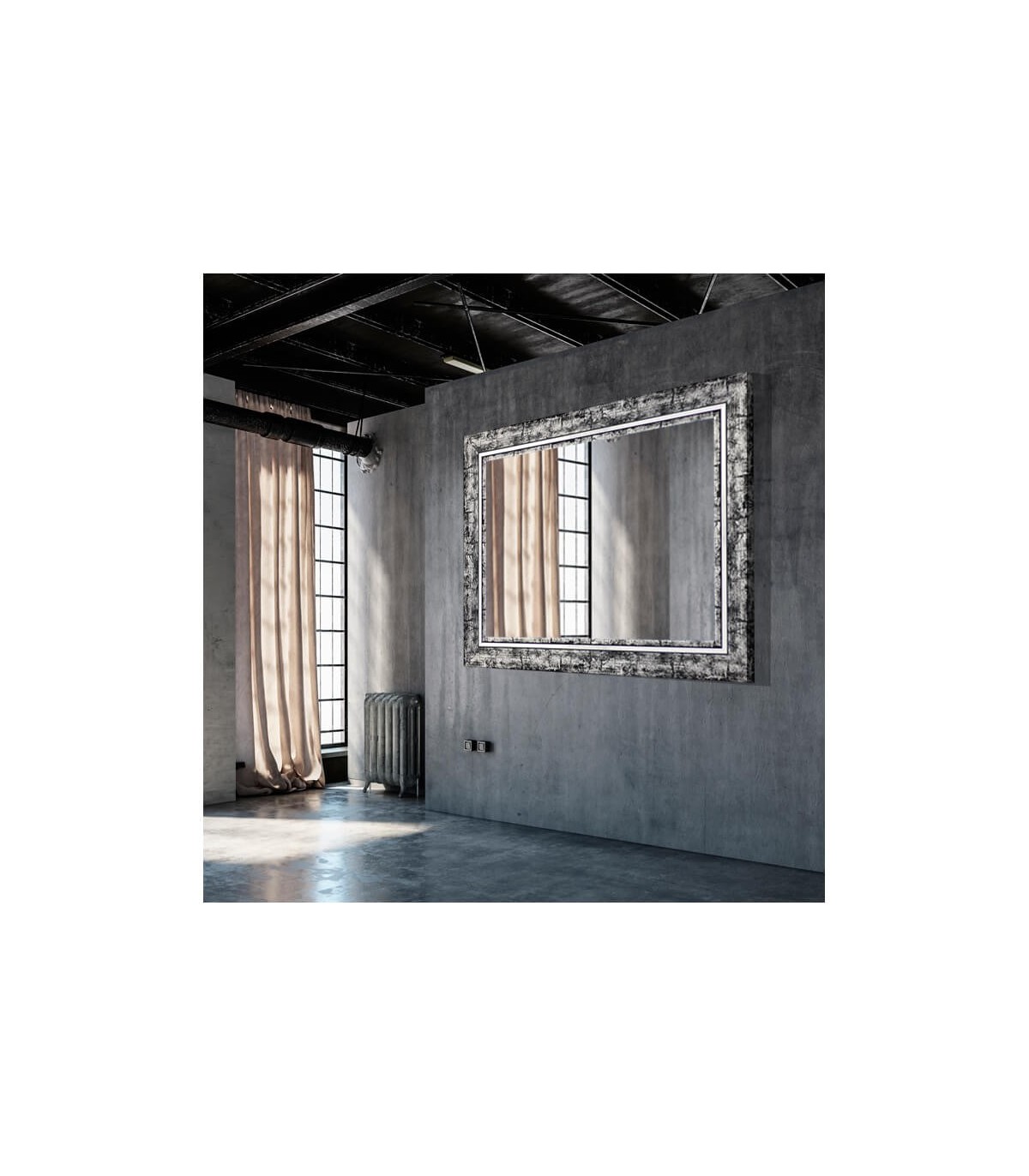 Su diseño encaja perfectamente en interiores modernos, industriales o contemporáneos, aportando un toque distintivo. En recibidores o pasillos, el marco negro decapado actúa como elemento focal, delimitando la pared y dando sensación de orden. En salones o dormitorios, puede colocarse sobre aparadores o cabeceros, reflejando la luz y aportando equilibrio visual al conjunto. En comercios y oficinas, añade sofisticación y refuerza la identidad del espacio.