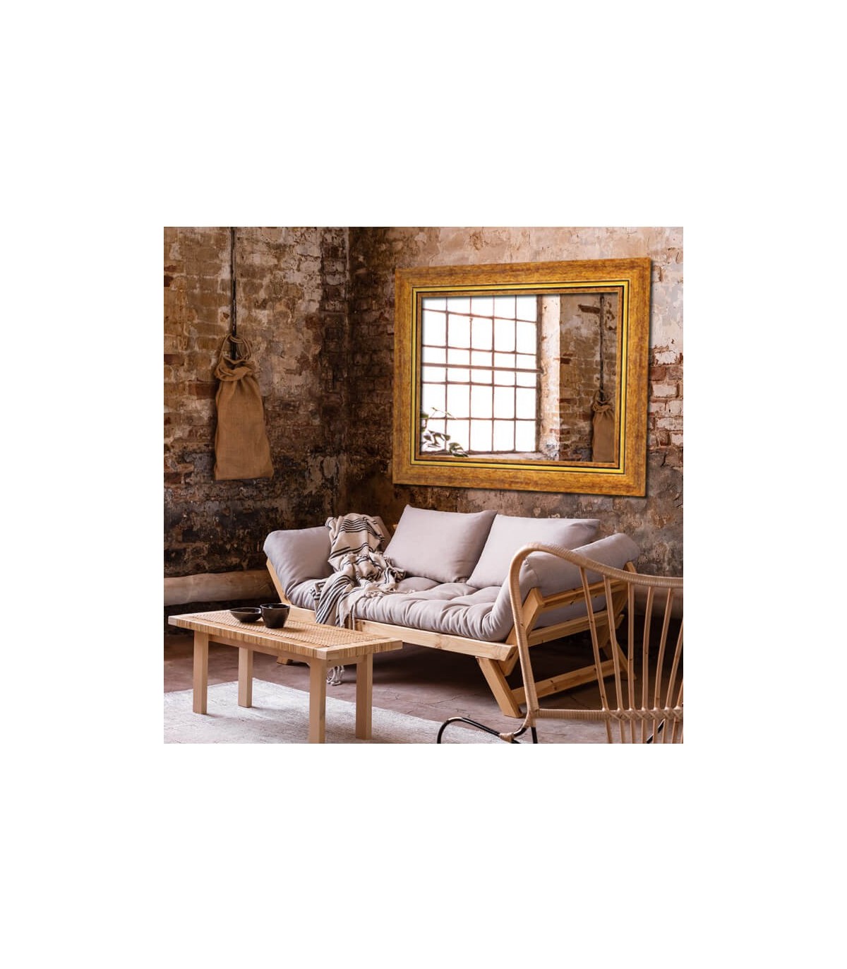 El espejo marco madera roble dorado combina la calidez natural del roble con un sutil acabado dorado que realza el marco y aporta un toque de elegancia clásica. Su diseño equilibrado, con líneas rectas y textura visible de la madera, enmarca el cristal de manera limpia y sofisticada, integrándose con facilidad en ambientes modernos, rústicos o industriales.