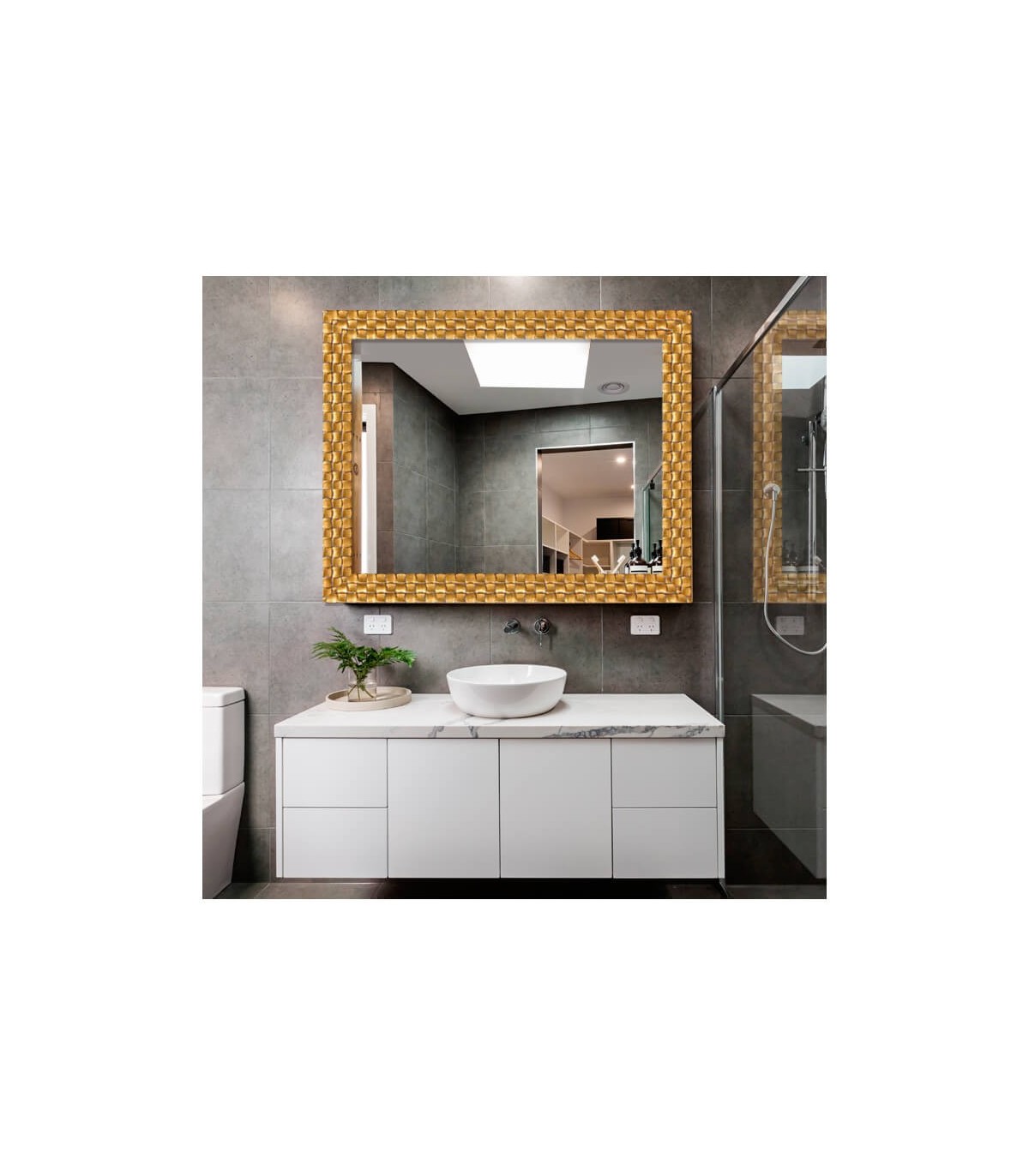Espejo marco mosaico dorado para decorar y personalizar tu hogar, tu negocio o tu comercio. Se envía totalmente montado y preparado para colgar. Incluye kit de colgadores.