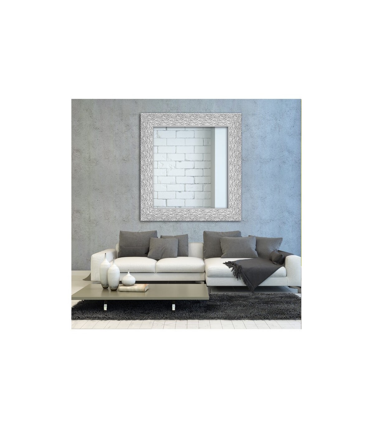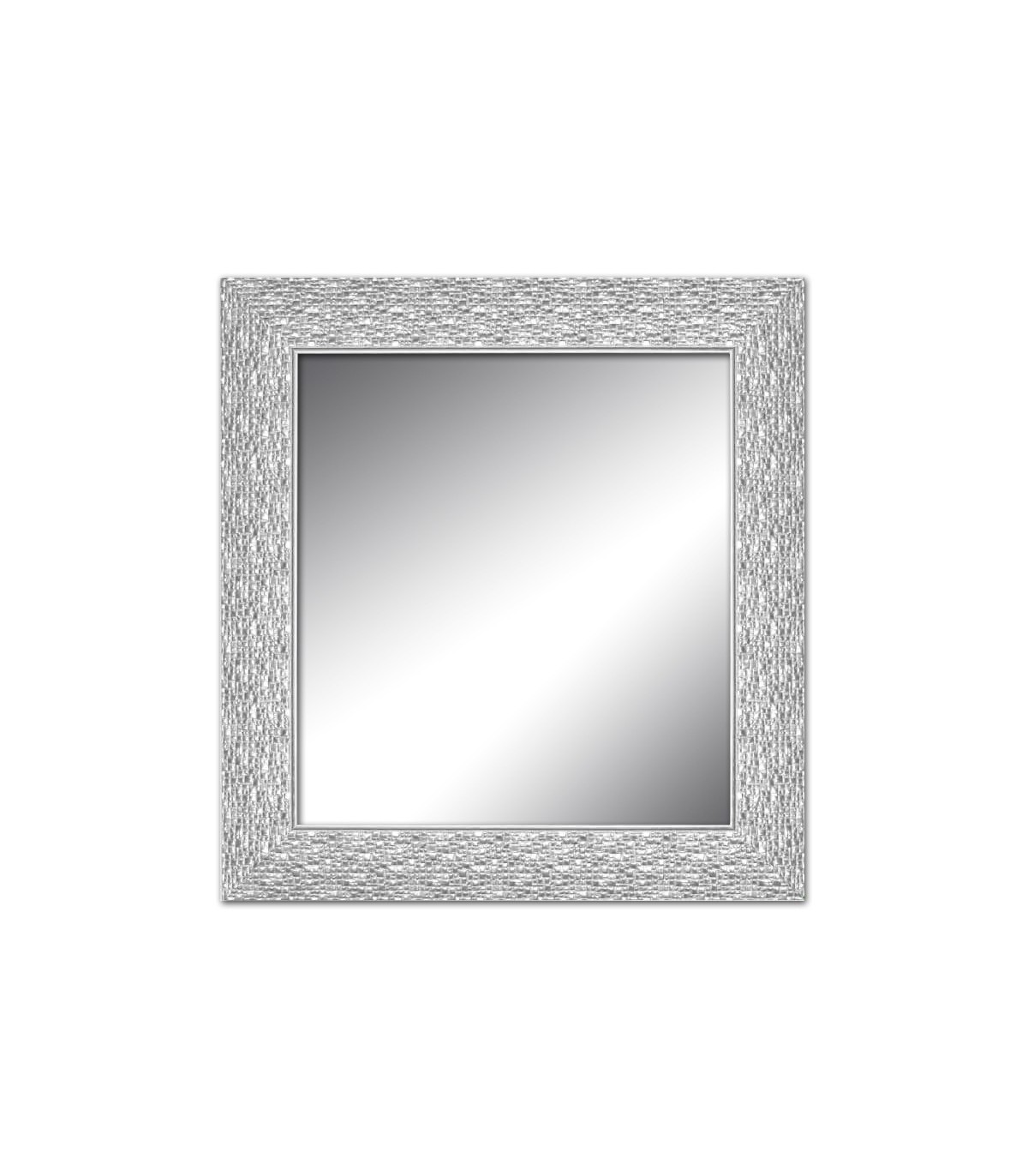 Espejo marco mosaico gris plata para decorar y personalizar tu hogar, tu negocio o tu comercio. Se envía totalmente montado y preparado para colgar. Incluye kit de colgadores.