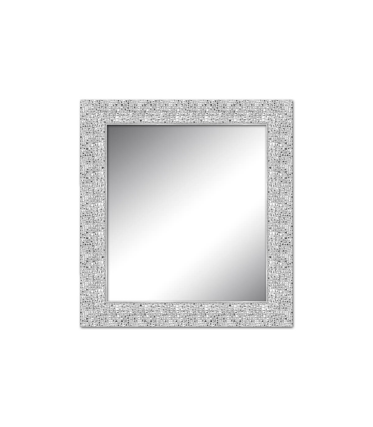 Espejo marco mosaico plata para decorar y personalizar tu hogar, tu negocio o tu comercio. Se envía totalmente montado y preparado para colgar. Incluye kit de colgadores.